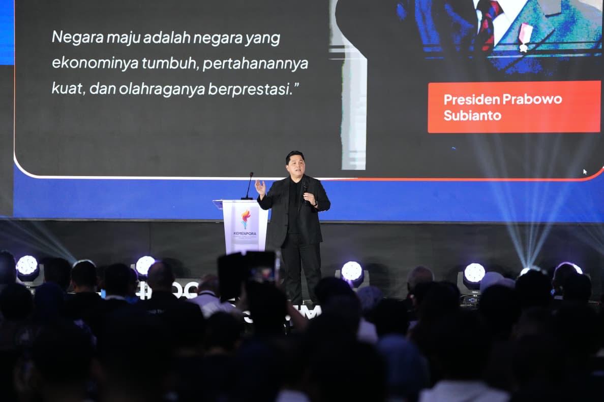 Di hadapan para pelaku olahraga nasional, Erick langsung menegaskan satu misi besar, yakni Indonesia harus masuk peta kekuatan industri olahraga dunia.