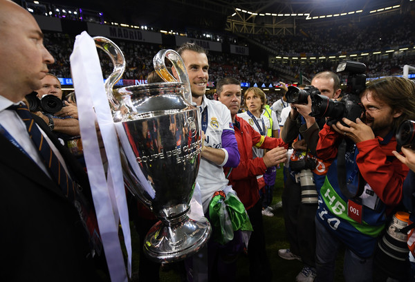 Bale menyamai catatan dua legenda Madrid, Miguel Munoz dan Enrique Mateos (Spanyol) yang mengangkat trofi bersama Madrid di Liga Champions 1956/57, Estadio Santiago Bernabeu.