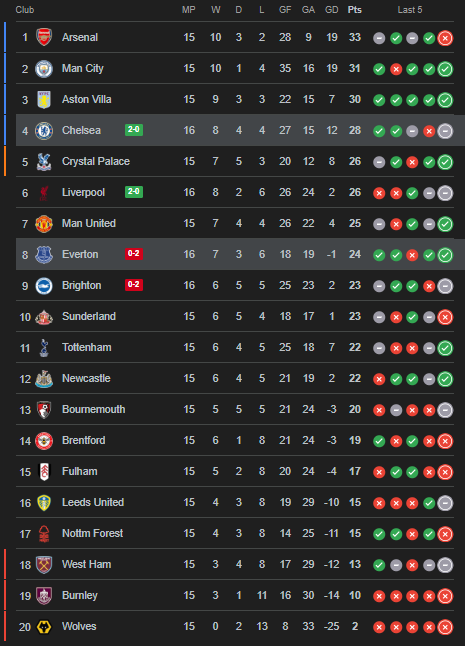 Dengan demikian, Chelsea naik pada posisi keempat klasemen sementara dengan 28 poin.