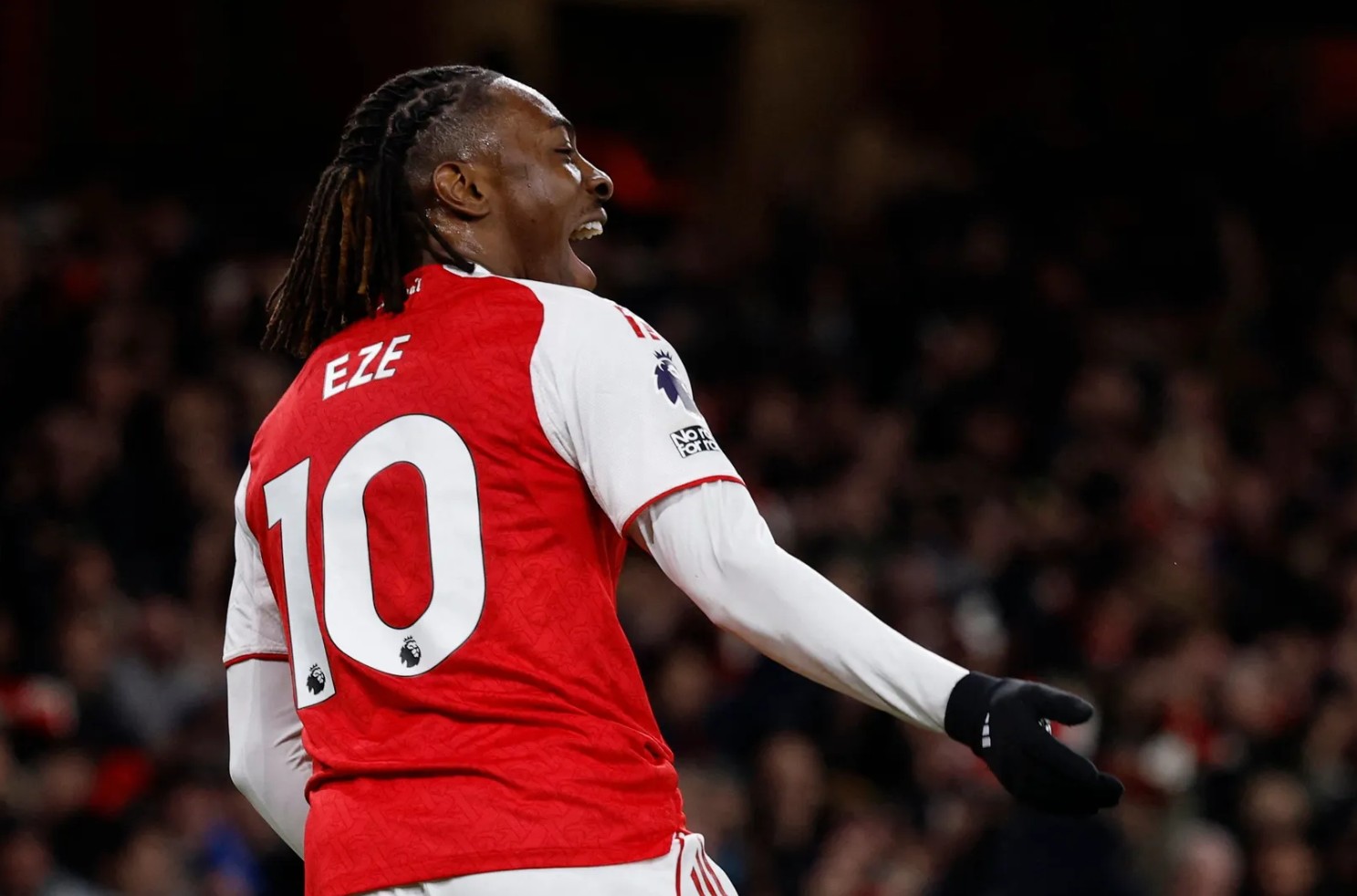 Eze, yang bergabung dengan Arsenal setelah menolak tawaran Tottenham, mencatat hat-trick dalam debutnya di Derby London Utara.