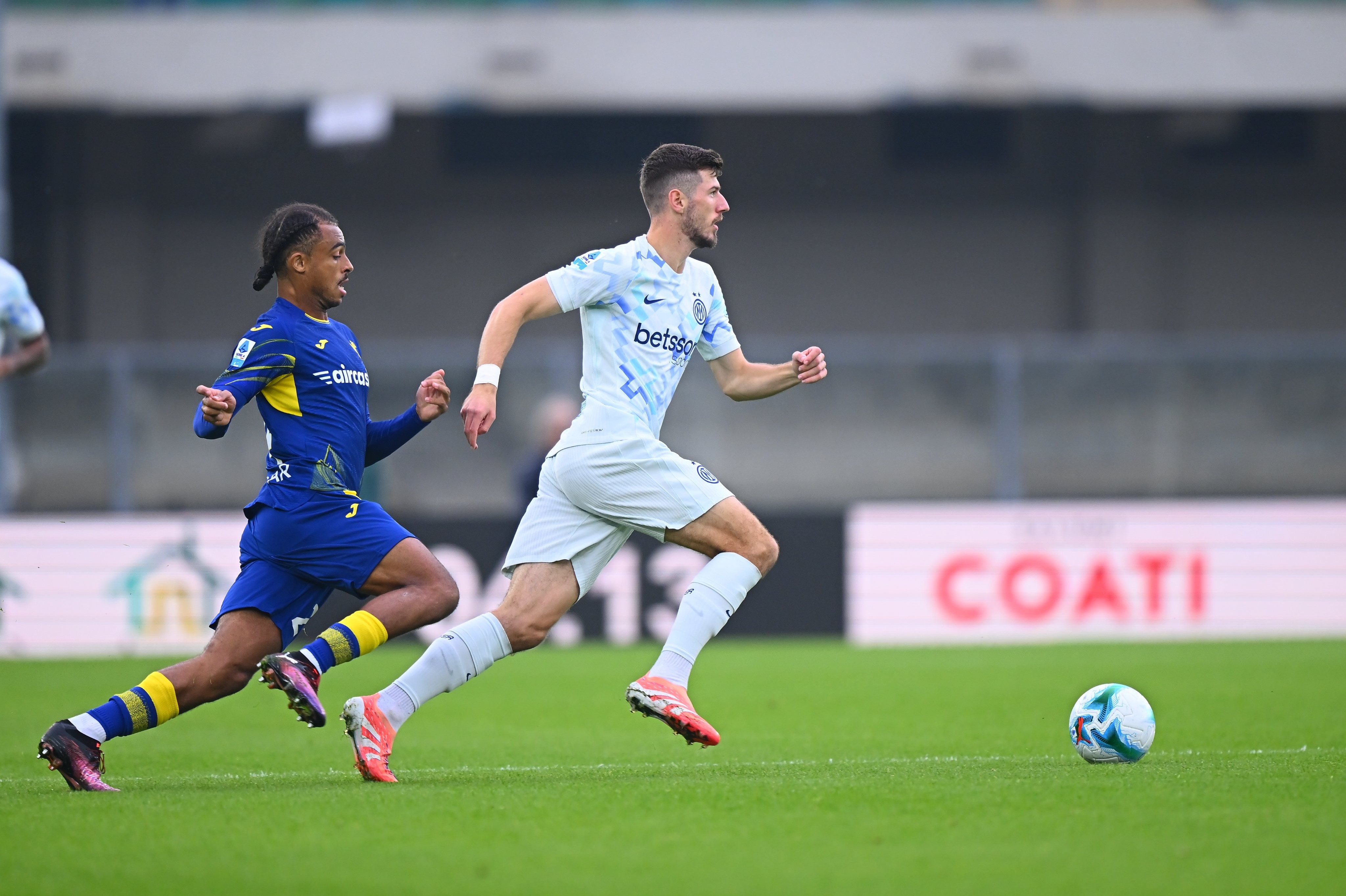Namun, Inter lengah jelang akhir babak pertama. Verona menyamakan kedudukan menjadi 1-1 lewat aksi Giovane Nascimento pada menit ke-40.