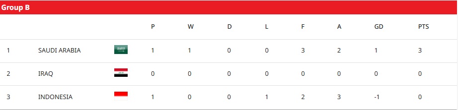 Sementara itu, Arab Saudi bercokol di puncak setelah mengoleksi tiga poin.