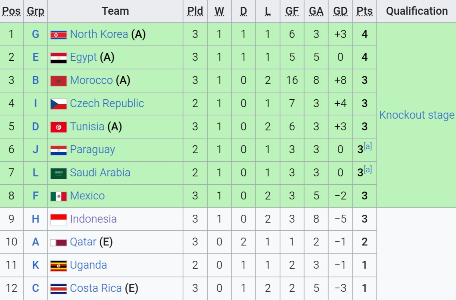Paraguay harus kalah 0-6 atau lebih dari Irlandia. Arab Saudi juga harus kalah 0-6 atau lebih dari Mali.