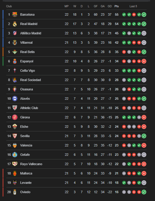 Berikut adalah klasemen terkini LaLiga: