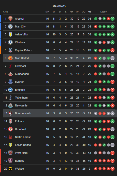 Lantas, bagaimana peta persaingan Premier League saat ini? Berikut adalah klasemen terbaru hingga pertandingan pekan ke-16.