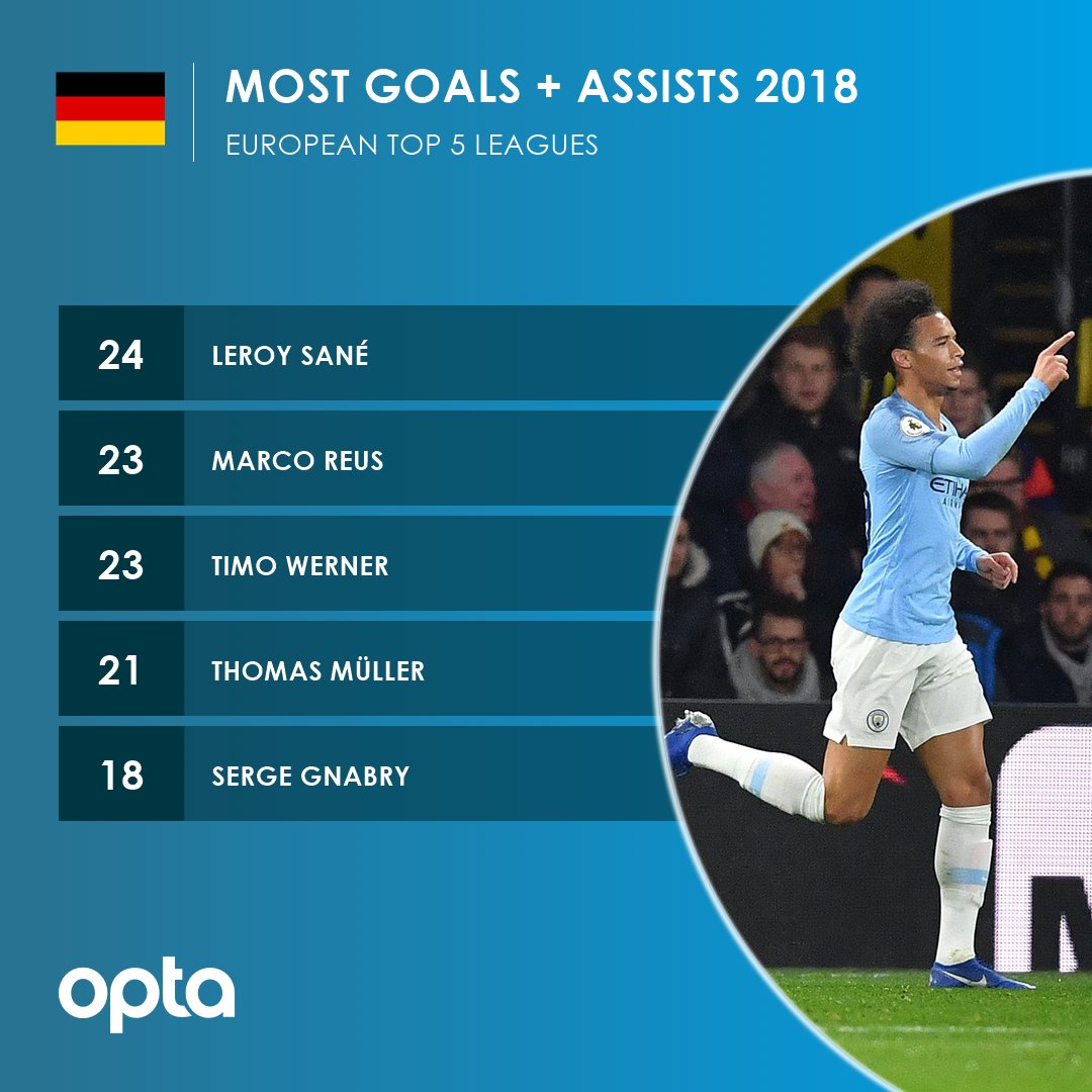 Hingga saat ini, Sane masih terus menjaga penampilannya pada titik tertinggi. Opta mencatat, dia meruapakan pemain Jerman yang paling banyak berkontribusi pada lima liga besar Eropa. Total, Sane mengoleksi 10 gol plus 14 assist (24).