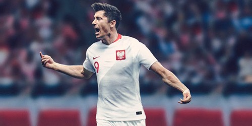 Timnas Polandia akan mengenakan jersey berwarna putih dengan detail lambang negara yang dibalut dengan warna merah. Kemudian, pada bagian depan akan dihiasi oleh pola rajut zig-zag dengan warna abu-abu muda. Adapun kerahnya akan berwaran merah terang.Rusia