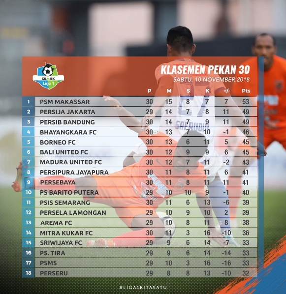 Jumlah 49 poin dikumpulkan Persija Jakarta setelah menjalani 29 laga, adapun Persib 30 laga. Persija masih punya lima laga sisa, sedangkan Persib sama seperti PSM hanya tinggal menjalani empat pertandingan.