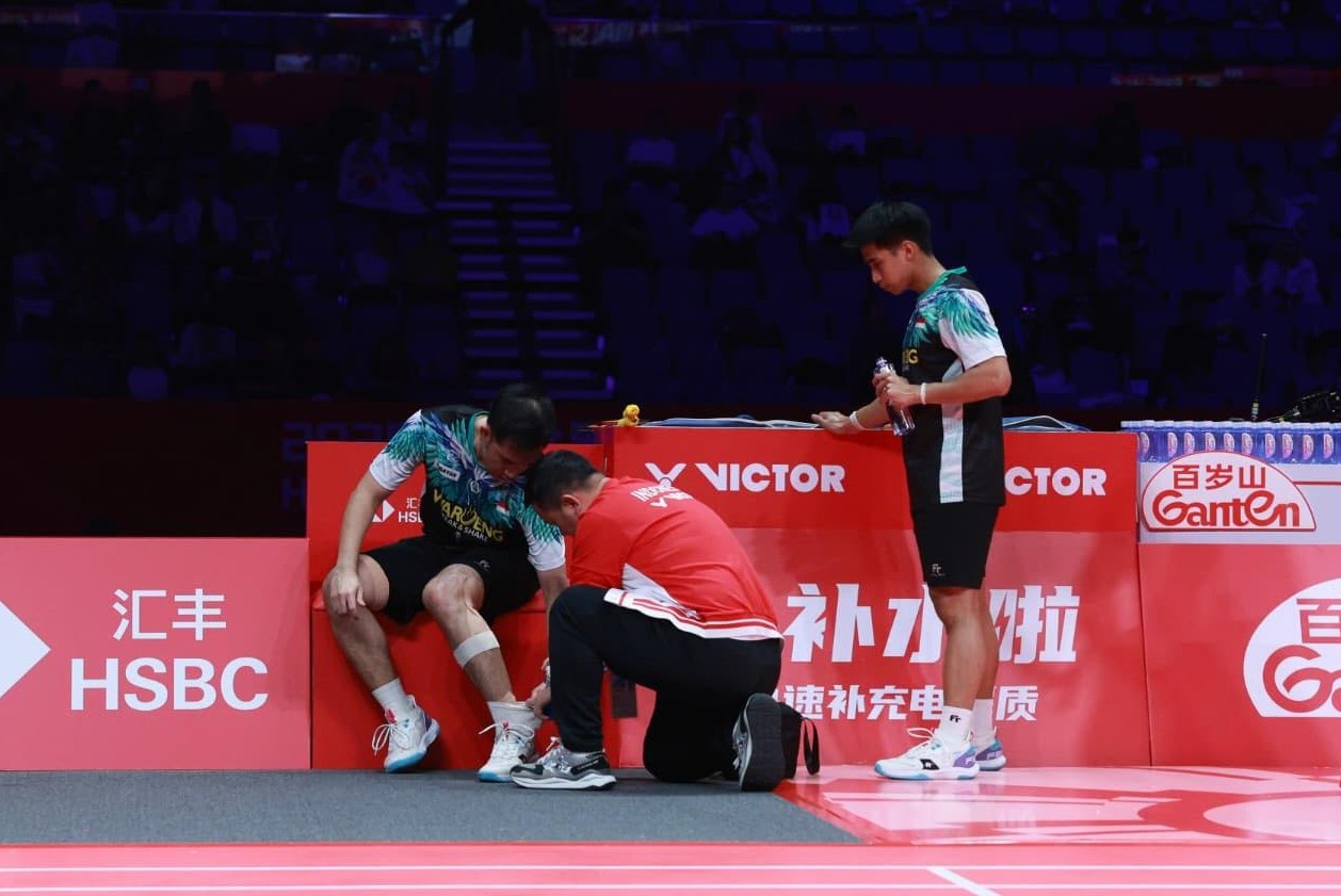 Awal terjadinya cedera itu dialaminya pada pertengahan pertandingan fase grup saat melawan Chiu Hsiang Chieh/Wang Chi Lin.