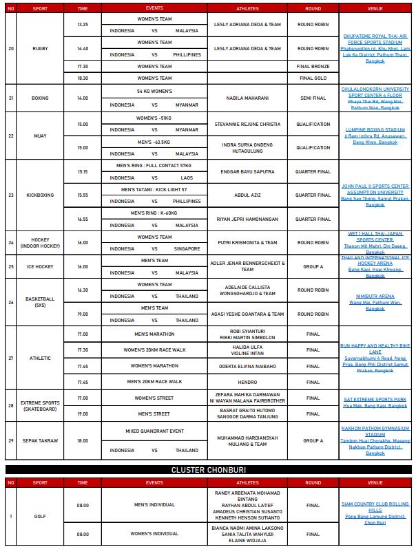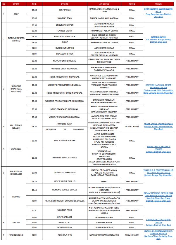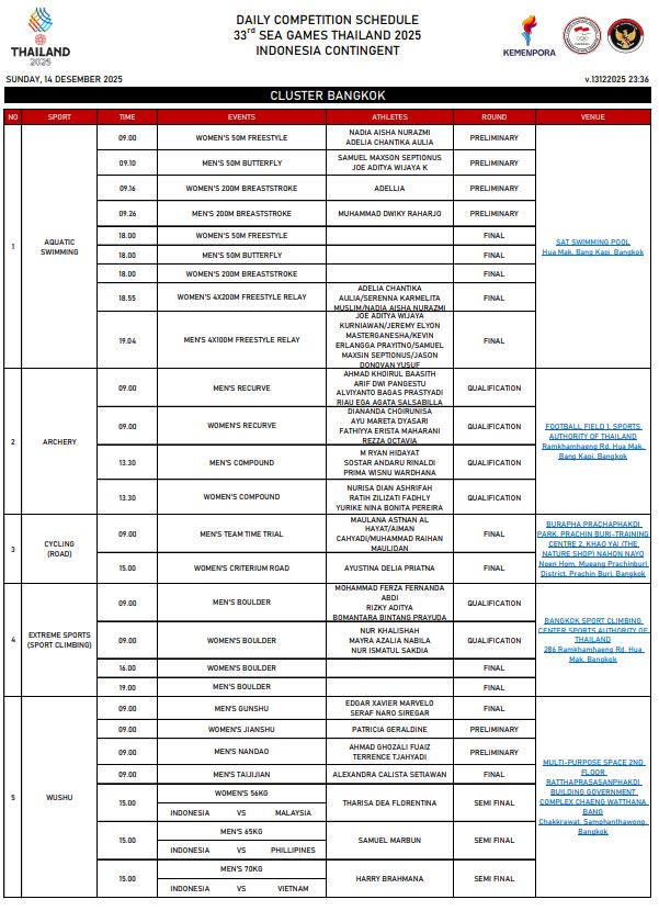 Berikut jadwal SEA Games 2025 Tim Indonesia pada Minggu (14/12):