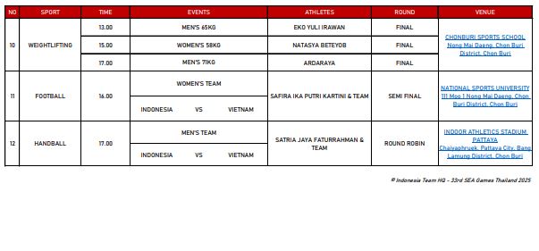 SEA Games 2025: Jadwal Tim Indonesia dan Potensi Cabor Emas Hari Ini, Minggu 14 Desember