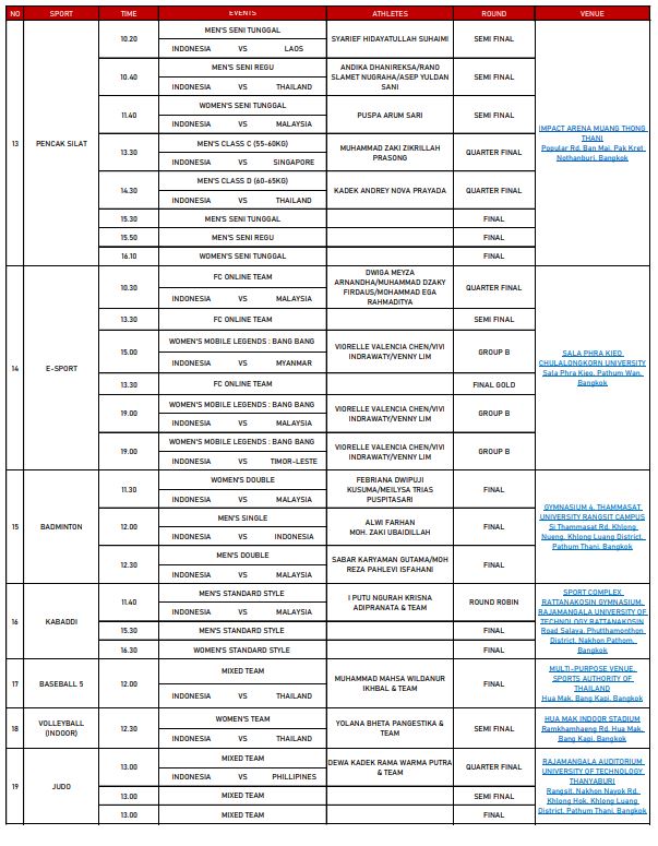 Total, 23 cabor akan memperebutkan medali emas di hari kelima SEA Games 2025, khususnya dari bulu tangkis dengan All Indonesia Finals di nomor tunggal putra.