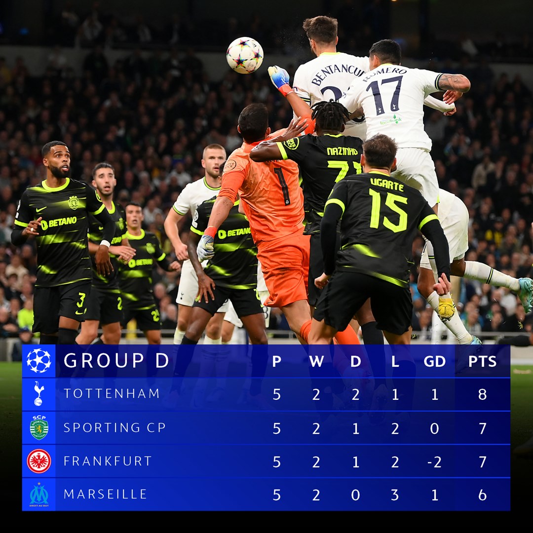 Tottenham saat ini memang memuncaki klasemen dengan mengungguli Sporting Lisbon, Eintracht Frankfurt, dan Olympique Marseille. Namun The Lilywhites masih bisa tergusur dari dua teratas.