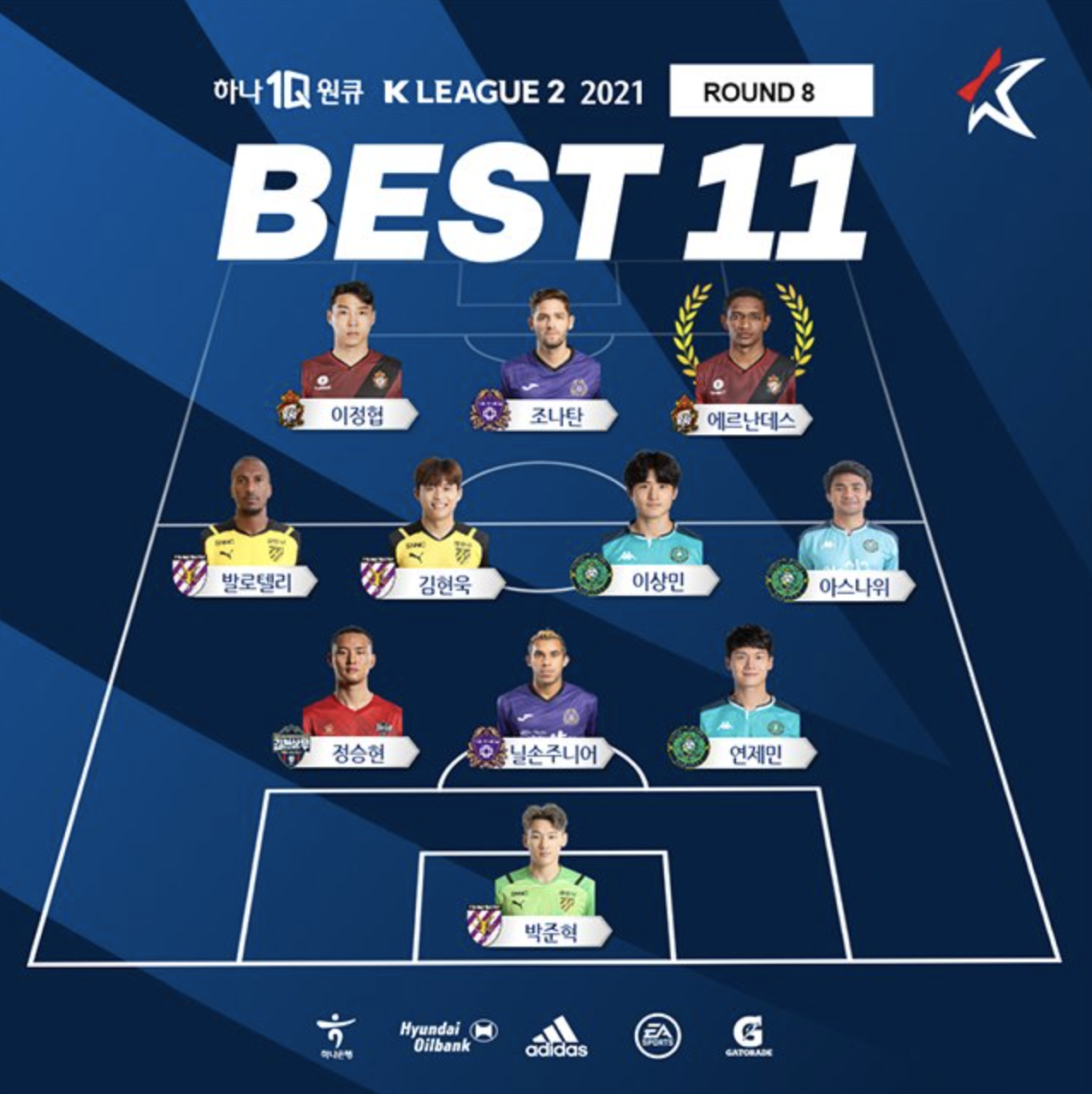 K League juga memasuklkan dua rekan setim Asnawi ke dalam Best 11 putaran kedelapan. Yakni Yeon Jei-min dan Lee Sang-min.
