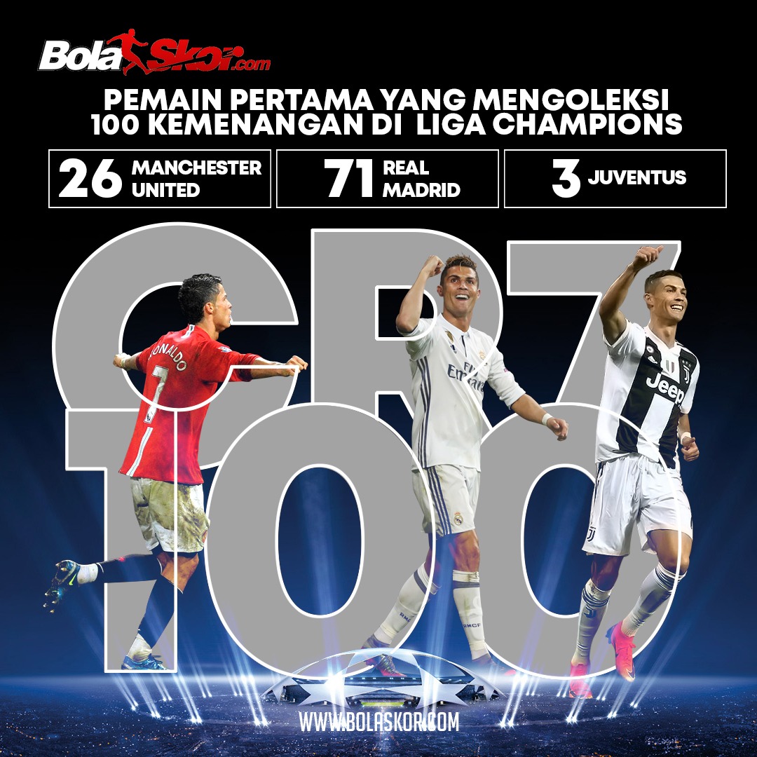 Rupanya, selain membantu Juventus, Cristiano Ronaldo juga menorehkan rekor pribadi. Ronaldo menjadi pesepak bola pertama yang meraih 100 kemenangan pada ajang Liga Champions.
