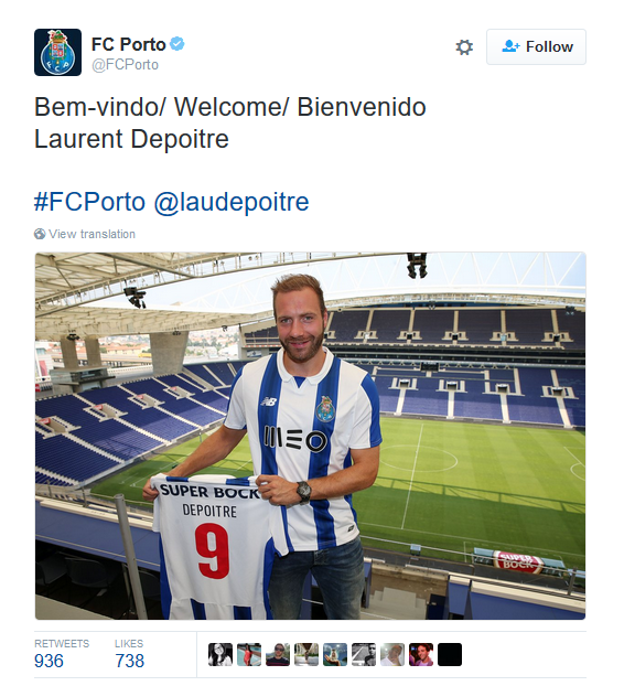 "Porto adalah klub dengan sejarah besar dan fans yang fantastis," kata Depoitre mengenai kepindahannya kali ini.