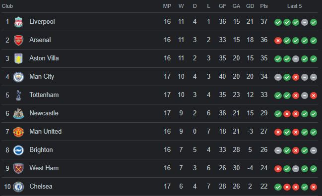 Klasemen Terkini Premier League: Punggung Arsenal Mulai Terlihat, Manchester United dan Liverpool Berdekatan