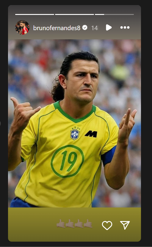 Satu di antara yang mengundang perhatian adalah Bruno Fernandes. Gelandang asal Portugal itu memilih membagikan gambar lucu di Instagram Story.