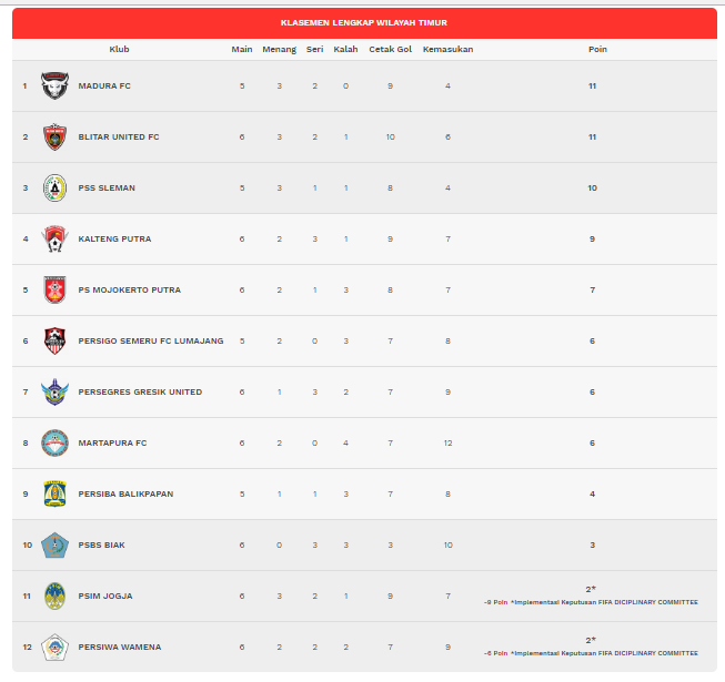 Di wilayah timur, Kalteng Putra berhasil mengalahkan Persegres Gresik United. Begitupun Blitar United yang mengalahkan PS Mojokerto Putra 2-1.