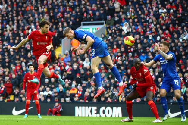 Saat Cardiff seperti di atas angin, Liverpool justru berhasil membuka skor pada menit ke-53. Gol lahir dari tandukan Diogo Jota yang meneruskan umpan sepakan bebas Trent Alexander-Arnold.