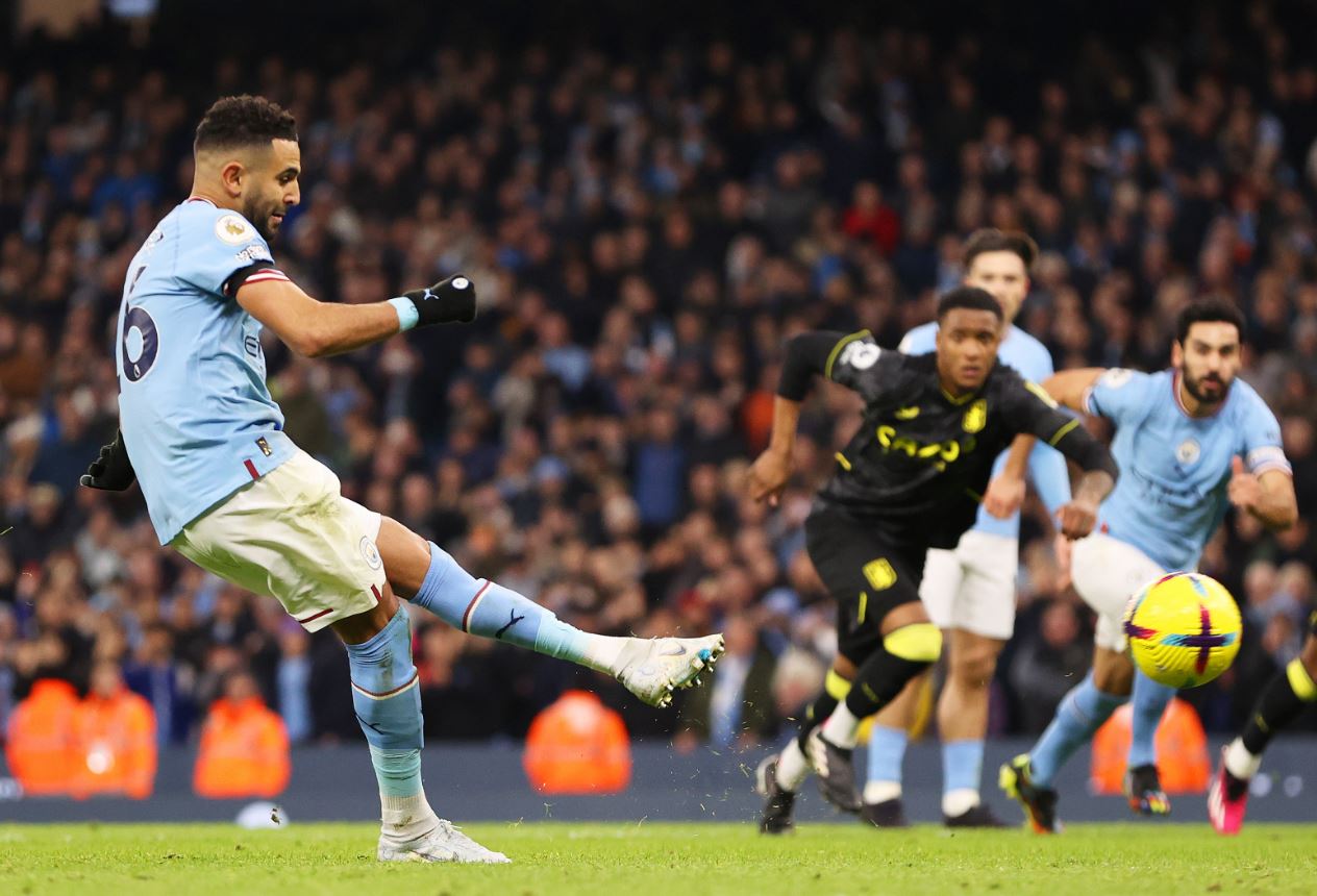 Jelang turun minum pertahanan Villa lagi-lagi melakukan kesalahan dan kali ini saat Jacob Ramsey menjatuhkan Grealish di kotak penalti. Penalti diambil oleh Mahrez dan ia mencetak gol, menutup paruh pertama dengan keunggulan 3-0 untuk keunggulan Man City.