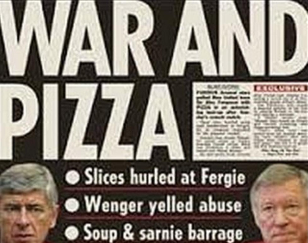 Di terowongan setelah pertandingan, kemarahan memuncak di antara staf kedua klub. Di tengah perkelahian, sepotong pizza dilemparkan ke arah manajer Manchester United Sir Alex Ferguson.