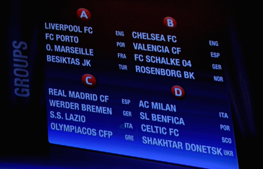 Seperti biasanya, 32 tim peserta akan dibagi sama rata ke dalam empat pos sesuai dengan kriteria. Pot 1 dihuni pleh juara bertahan, juara Liga Europa, dan juara dari enam liga tertinggi Eropa musim lalu.