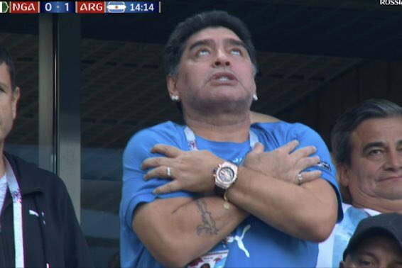 BolaSkor.com - Bukan hanya Lionel Messi yang menjadi perhatian utama ketika Argentina mengalahkan Nigeria 2-1 pada laga ketiga Grup D Piala Dunia 2018, di Saint Petersburg Stadium, Selasa (26/6) waktu setempat atau Rabu dini hari WIB. Sang legenda, Diego Maradona, ikut menjadi buah bibir dari bangku penonton.
