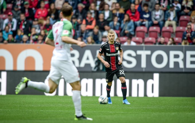 Bayer Leverkusen (4-2-3-1): Lukas Hradecky; Lars Bender, Jonathan Tah, Sven Bender, Wendell; Julian Baumgartlinger, Charles Aranguiz; Kai Havertz, Nadiem Amiri, Kevin Volland; Lucas Alario.