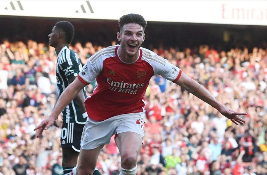 Pada menit keenam waktu tambahan, Declan Rice mencetak gol pertamanya untuk The Gunners membuat Stadion Emirates bergemuruh.