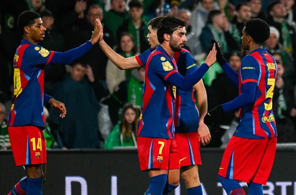 Barcelona (4-2-3-1): 13-Garcia; 3-Balde, 18-Martin, 5-Cubarsi, 23-Kounde; 22-Bernal (16-Lopez 58'), 17-Casado; 14-Rashford (11-Raphinha 67'), 20-Olmo (9-Pedri 68'), 10-Yamal; 7-Torres (9-Lewandowski 68')