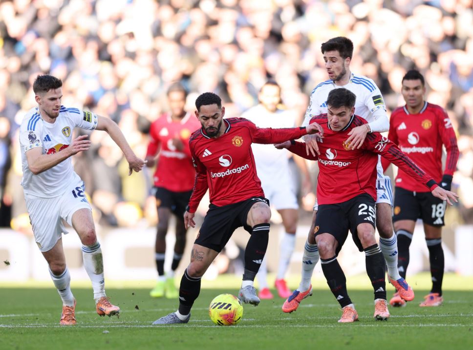 Benar saja, Leeds bermain dengan determinasi tinggi dan memaksa dua gelandang petarung Man United, Casemiro dan Manuel Ugarte, bekerja keras.