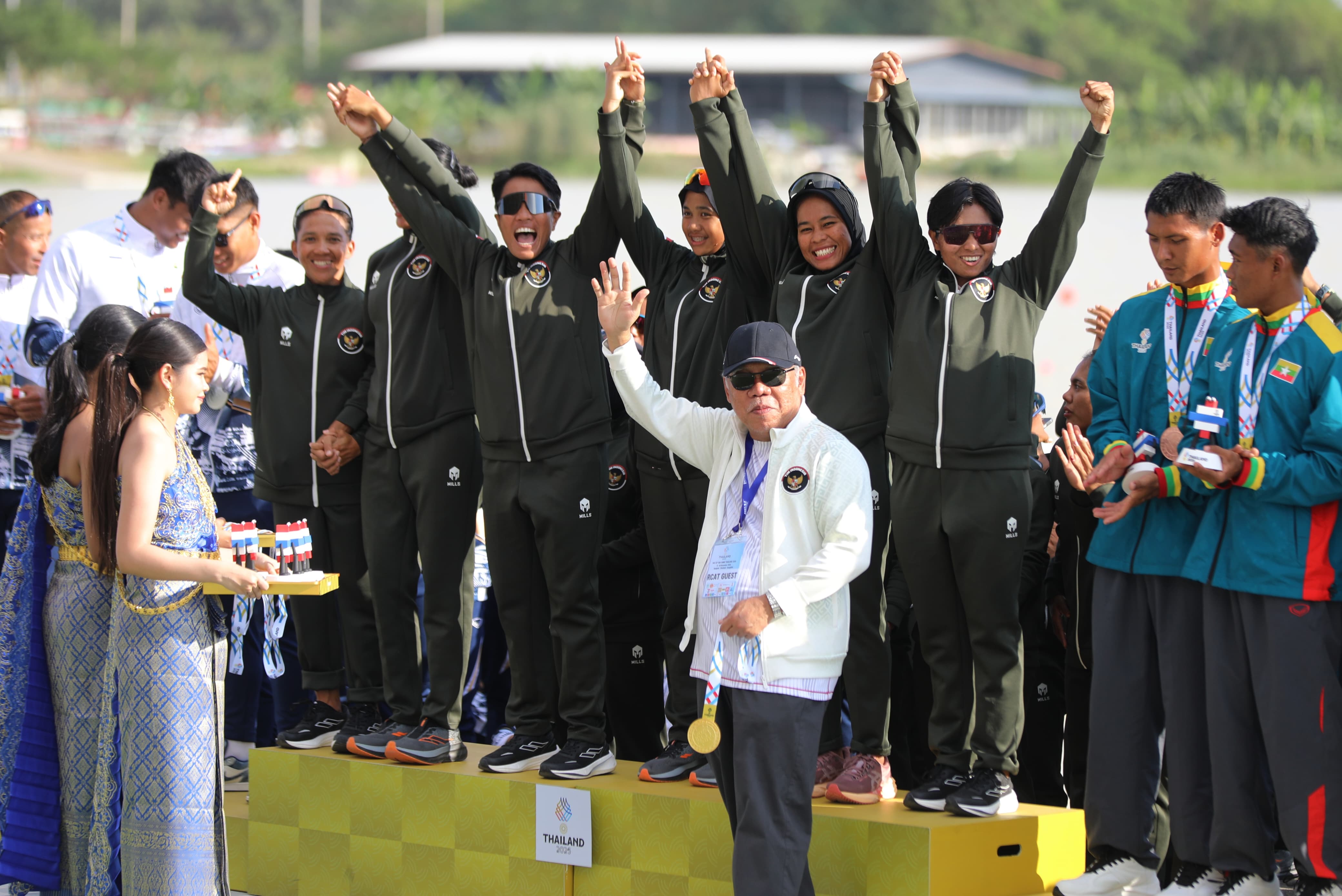 Medali emas didapatkan oleh tim dragon boat putra Indonesia di nomor small boat 500m.