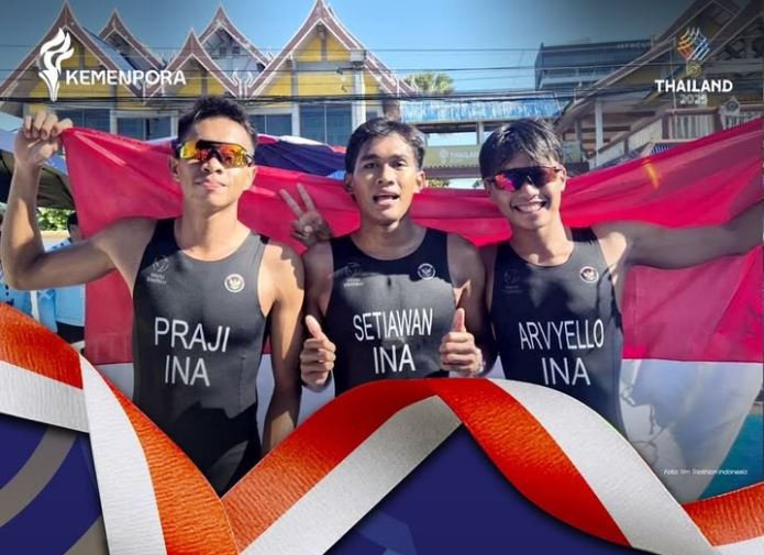 "Sobatpora, prestasi Tim Indonesia dibuka dengan manis pagi ini dengan medali emas dari cabang olahraga Triathlon," demikian ucapan selamat di Instagram Kemenpora. "Eva Desiana, Zahra Bulan Aprillia Putri, dan Martina Ayu Pratiwi berhasil finish terdepan pada nomor Women’s Duathlon Team Relay."